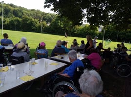 Bei schönstem Wetter und warmen Temperaturen konnten wir am 16.08.25 den Bewohnern vom Haus Sebastian ein abwechslungsreichen Nachmittag bescheren. Mit vielen helfenden Händen wurden die Bewohner ob fussläufig, mit Rollator oder Rollstuhl von uns an diesem Nachmittag auf die Vereinsanlage geholt. Die verschiedenen Abteilungen führten vor, wie sie trainieren und was alles möglich ist als Mensch-Hunde-Team. Einige der Bewohner hatten früher selber Hunde und freuen sich immer sehr auf diesen Nachmittag. Demenziell erkrankte Bewohner zeigen im Kontakt mit den Hunden emotionale Reaktionen, die sich so im Alltag oft nicht mehr finden. Für Kaffee und Kuchen war ebenfalls gesorgt. Für alle Beteiligten war dieser Nachmittag wieder etwas ganz besonderes. Man könnte fast sagen, dass dieses Treffen im August auf der Anlage, bereits Tradition hat. Jedes Jahr organisiert die BSG Abteilung diesen Nachmittag. Unter dem Jahr werden die Bewohner mit den Hunden regelmäßig besucht. Ein großer Dank geht an alle Helfer, die zum Gelingen des Treffens beitragen.