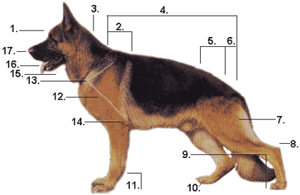 Der Deutsche Schäferhund ist ein Traber. Die Gliedmaßen müssen in Länge und Winkelungen so aufeinander abgestimmt sein, dass er ohne wesentliche Veränderung der Rückenlinie die Hinterhand bis zum Rumpf hin verschieben und mit der Vorhand genauso weit ausgreifen kann. Jede Neigung zur Überwinkelung der Hinterhand mindert die Festigkeit und die Ausdauer und damit die Gebrauchstüchtigkeit. Bei korrekten |