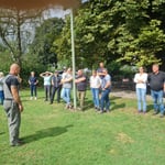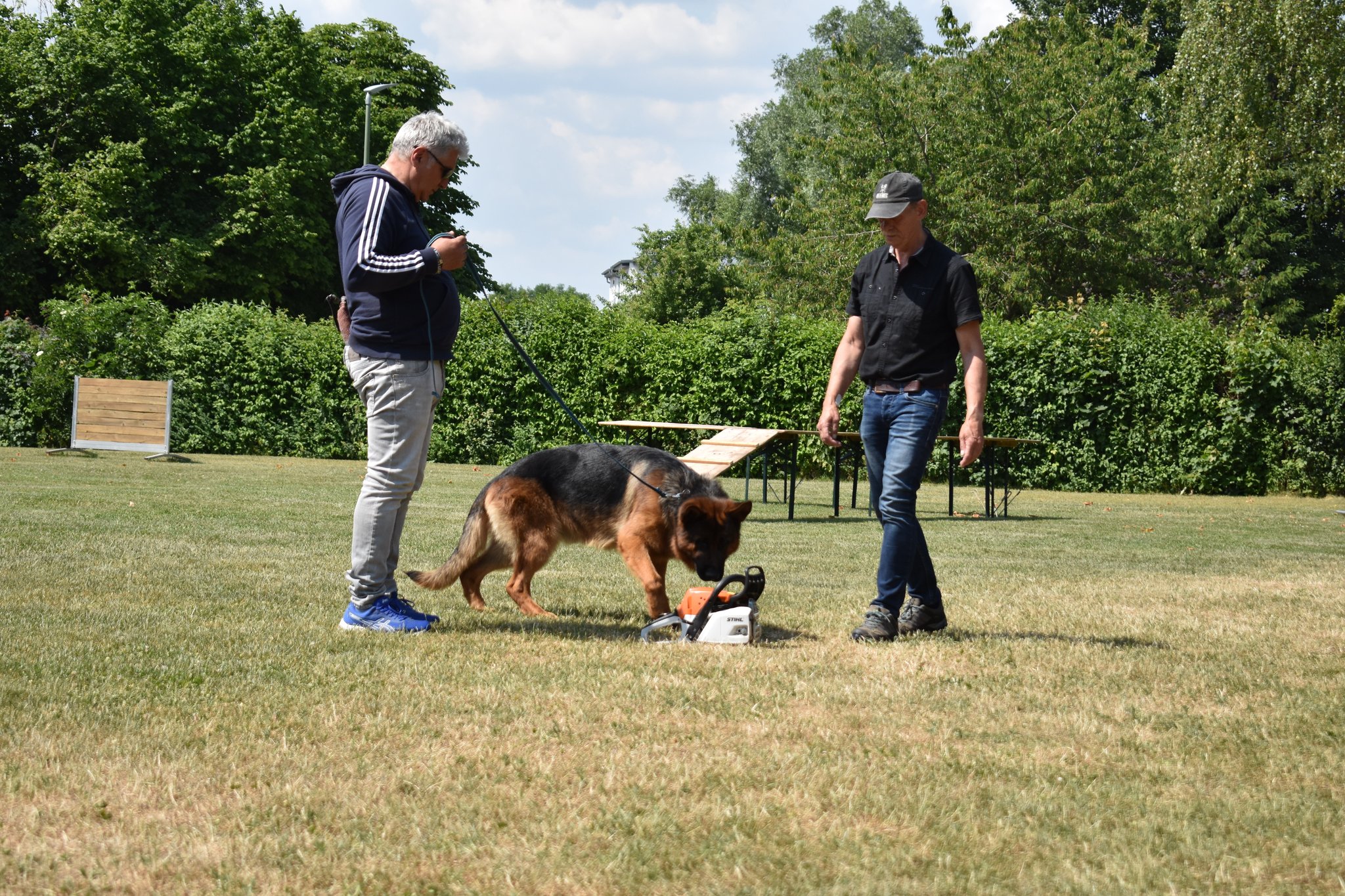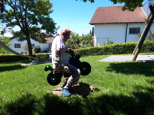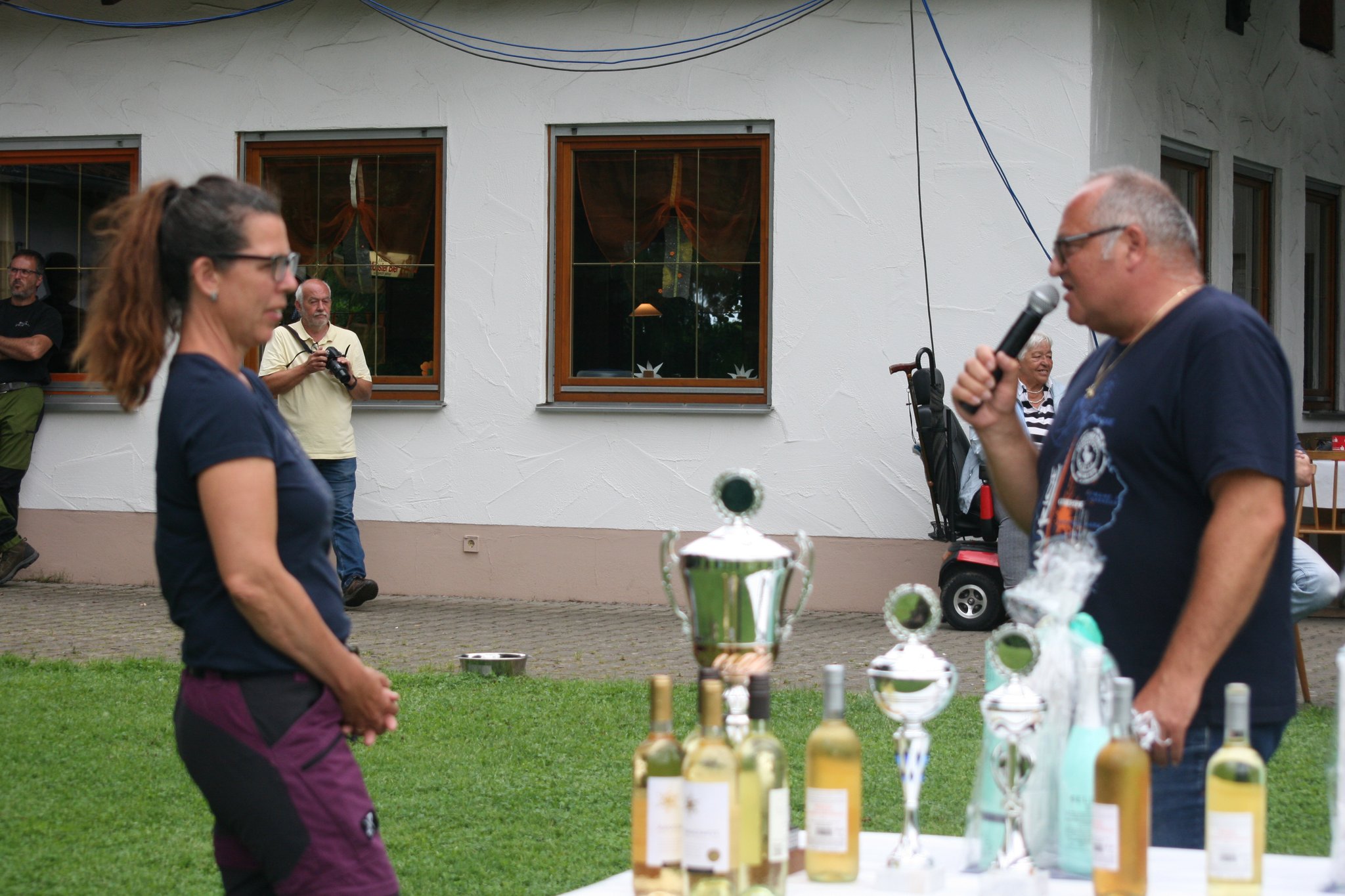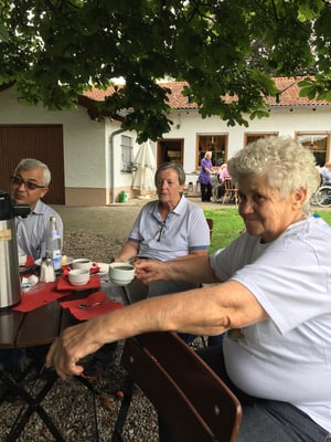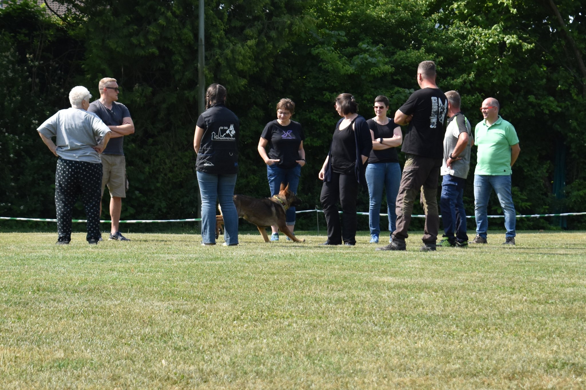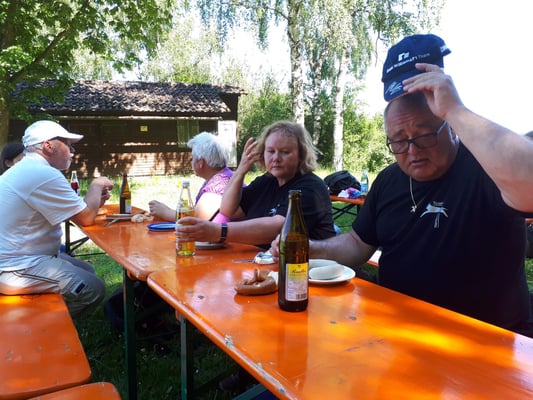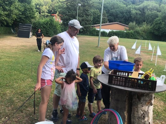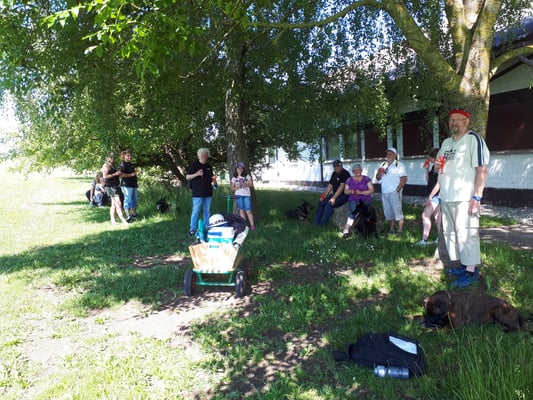 Auch dieses Jahr haben wir, wie schon die Jahre zuvor, einige Bewohner des Pflegeheims „Haus Sebastian“ auf unsere Vereinsanlage geholt. An einem Samstagnachmittag bei schönem Wetter, nicht zu heiß gingen wir gemeinsam ins Pflegeheim, um die Bewohner abzuholen. Viele sind nicht mehr selbstständig mobil und auf Rollator oder Rollstuhl angewiesen. Für die Bewohner ist dies eine willkommene Abwechslung zum Alltag. Viele freuen sich lange darauf. Aufgrund der heißen Tage zuvor war es dies Jahr eine gemütliche Truppe von 15 Personen. Traditionell gabt es erst Kaffee und selbstgebackenen Kuchen, nachdem alle versorgt waren und die Truppe gestärkt, führten wir verschiedene Übungen aus unseren Trainingseinheiten vor. Natürlich durfte auch ein Agility Parcour nicht fehlen.