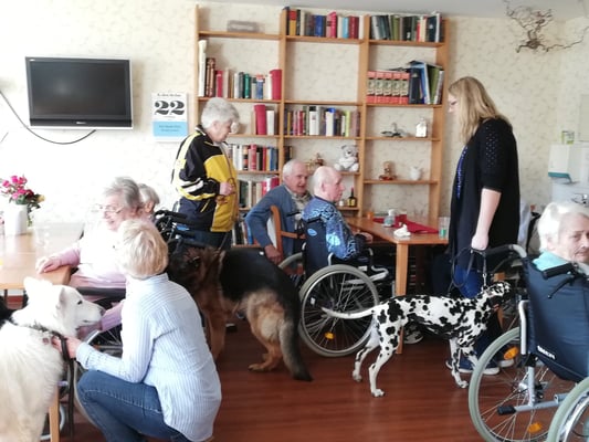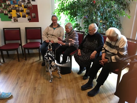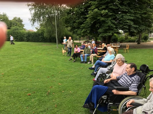 Zum Schluss durften die Bewohner die Hunde noch streicheln. Mit Ende der Veranstaltung kamen dann auch die ersten Regentropfen. Wir brachten gegen 17:00 Uhr die Bewohner wieder zurück und freuen uns bereits jetzt auf den nächsten Besuch.