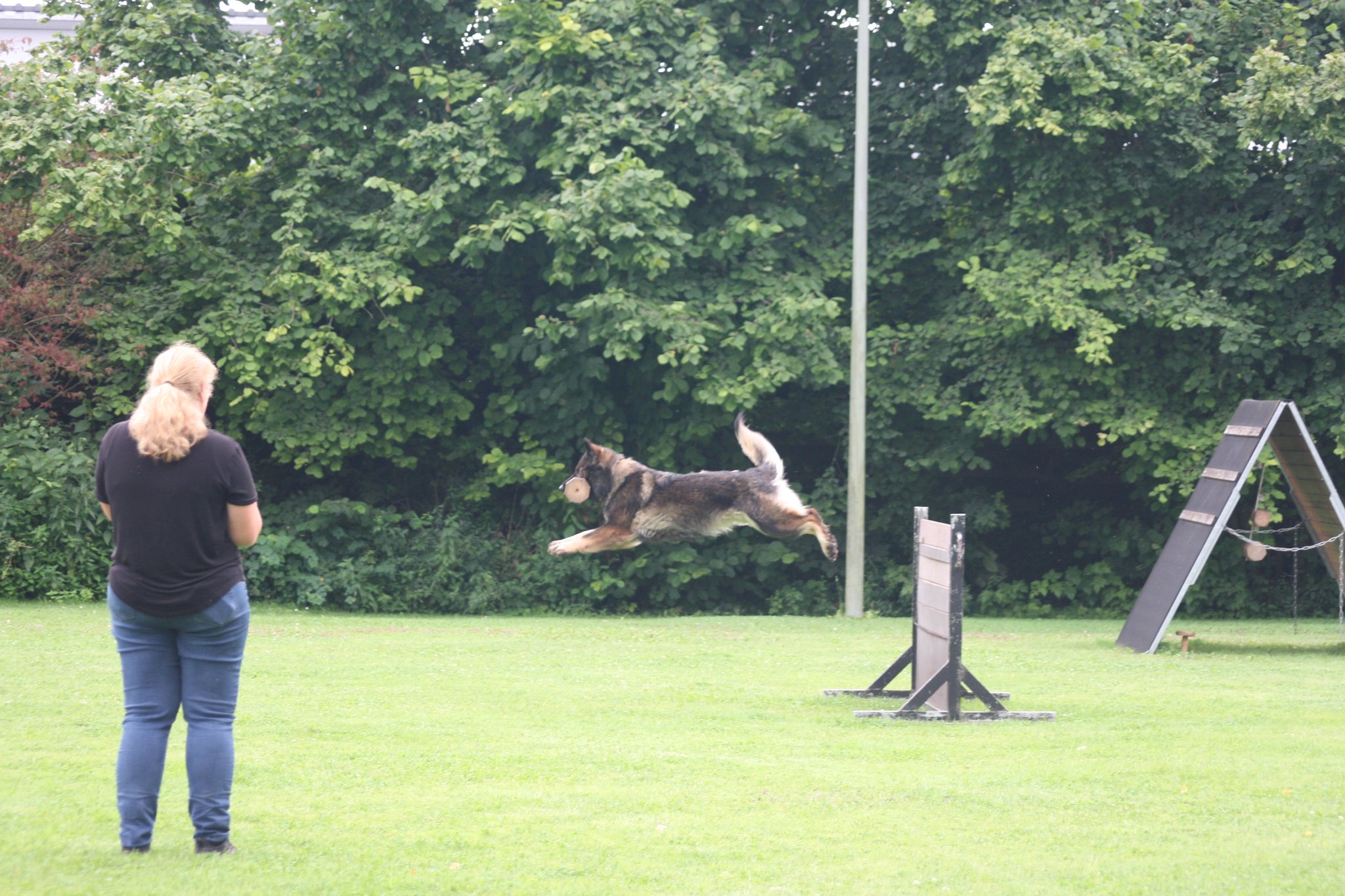 Zeitgleich war das Wochenende für den gesamten Verein ereignisreich. Zwei weitere Teams starteten noch auf einer anderen Veranstaltung in Babenhausen und lieferten gute Ergebnisse ab. Das Highlight jedoch war das Agilitiy Turnier auf dem eigenen Gelände. An beiden Tagen starteten etwa 90 Mensch-Hunde-Teams. Sie mussten sich in verschiedenen Schwierigkeitsstufen beweisen. Es wurde nicht nur die Zeit gewertet, sondern auch die Fehler die jedes Team macht. Beim Agility muss ein Parcour aus mehreren Hürden Brückenlauf und Tunneln in möglichst kurzer Zeit fehlerfrei durchlaufen werden. Auch aus Illertissen starteten mehrere Teilnehmer und konnten tolle Plätze belegen. Vanessa Gleich mit Nhala, noch ein Neuling, konnte sich am Samstag gleich zweimal Platz 1 sichern. Sie startete in A0 (0 Fehler) und im Spiel A0 (0 Fehler). Somit konnte sie für den Sonntag in A1, die nächsthöchste Schwierigkeit aufsteigen. Maria Keßler-Rothdach startete in A3 der schwierigsten Stufe auch „Königsklasse“ genannt mit Ihrer Bella, sie sicherte sich Platz 6 und im Jumping Platz 9 von über 90 Startern. Am Sonntag belegte sie Platz 4 im A-Lauf und Platz 5 beim Jumping. Beate Dürr mit Samu konnte sich im Spiel A0 Platz 3 sichern.